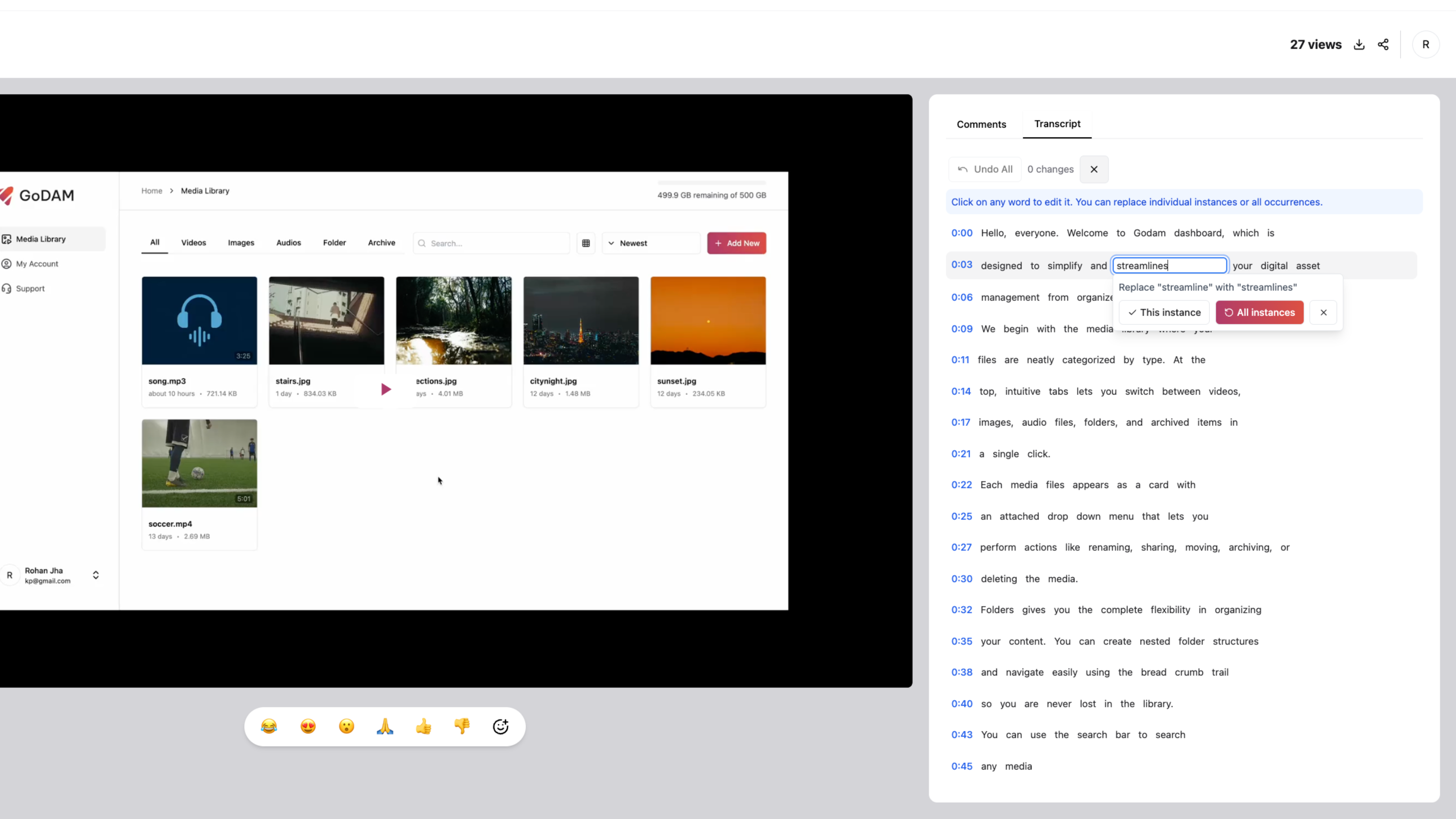 Transcribe your video content into searchable, editable text using GoDAM’s integrated AI-powered video transcription available in GoDAM Central, which helps convert video’s speech into text, perfect for documentation, accessibility, and SEO.