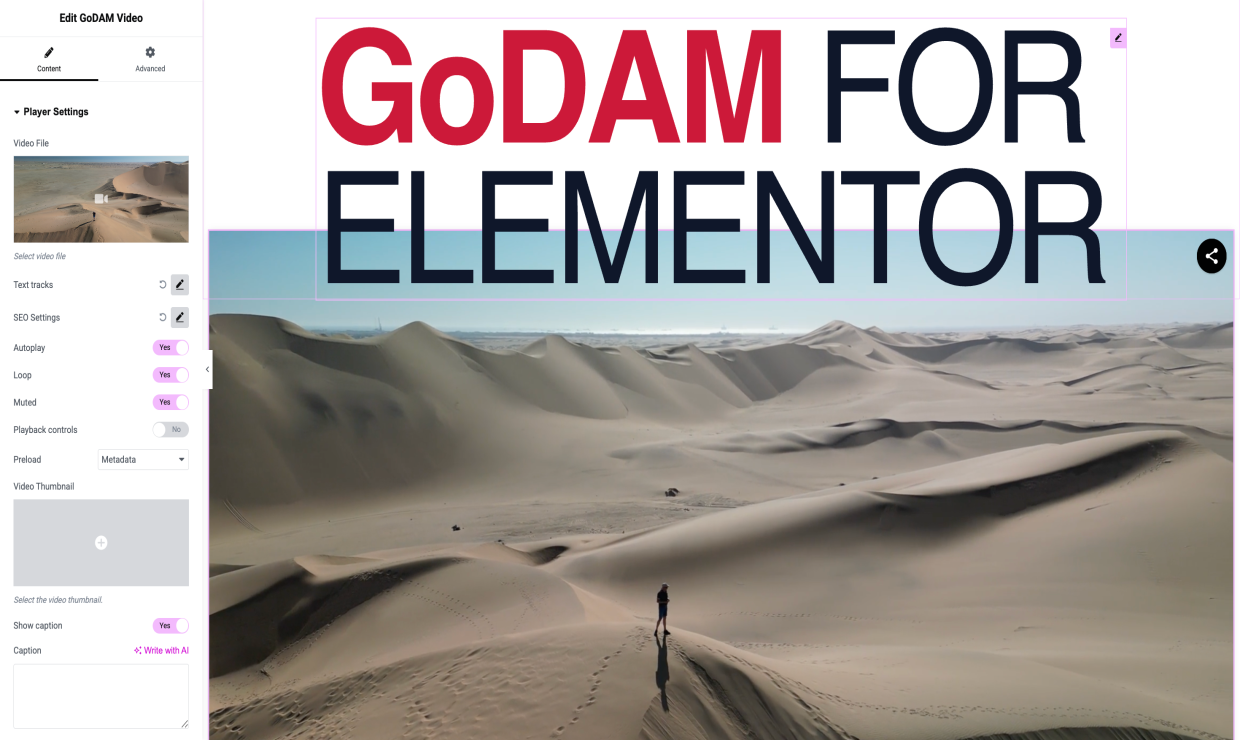 With GoDAM’s native Elementor widgets, adding rich media is as simple as drag and drop. Whether it’s GoDAM videos, GoDAM audio, or responsive GoDAM galleries, you can build immersive media layouts right inside Elementor’s visual builder, without touching a single line of code.